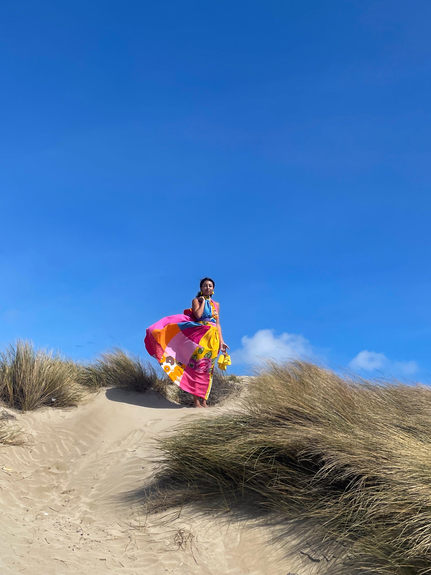 En grandissant, j’ai suivi ma passion et étudié le stylisme et le modélisme. Mais plus j’avançais, plus je voyais la mode s’uniformiser : des silhouettes standardisées, des tons neutres et une créativité mise de côté au nom de la sobriété. Ce n’était pas ma vision. Je cherchais les couleurs, le caractère, un héritage tant culturel que familial. Alors, j’ai décidé de créer ma propre voie.