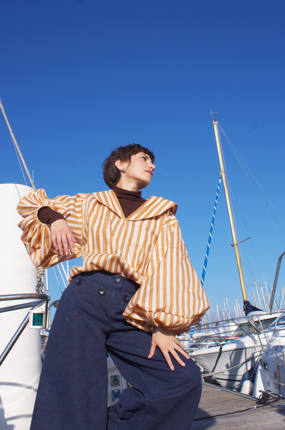 Inspiré du large, pensé pour le quotidien : le pantalon Gina signe une silhouette audacieuse, parfaite pour t’accompagner à toutes tes escapades, sur les quais comme en ville.